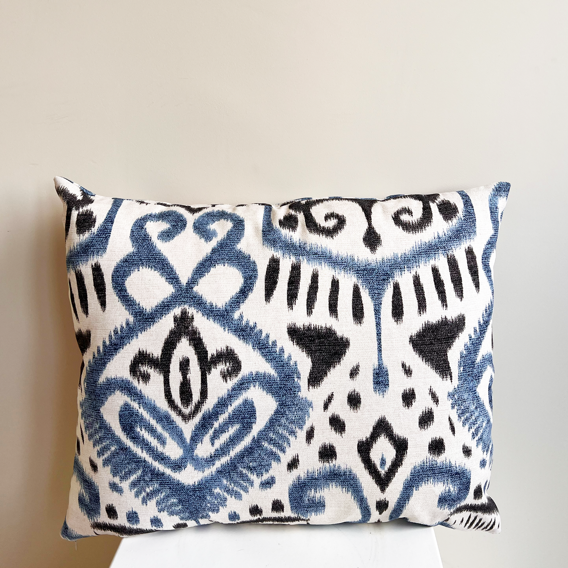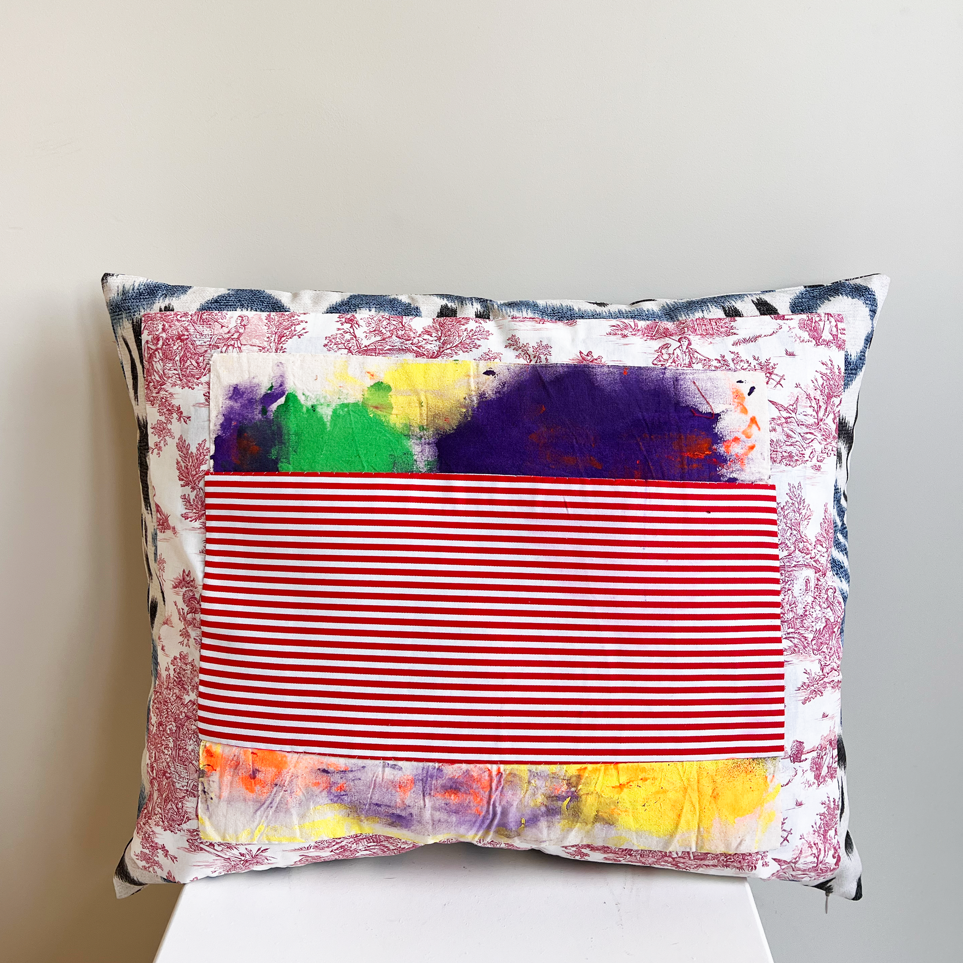 Large sized cushion made of Batik combined with Toile de Jouy fabric.