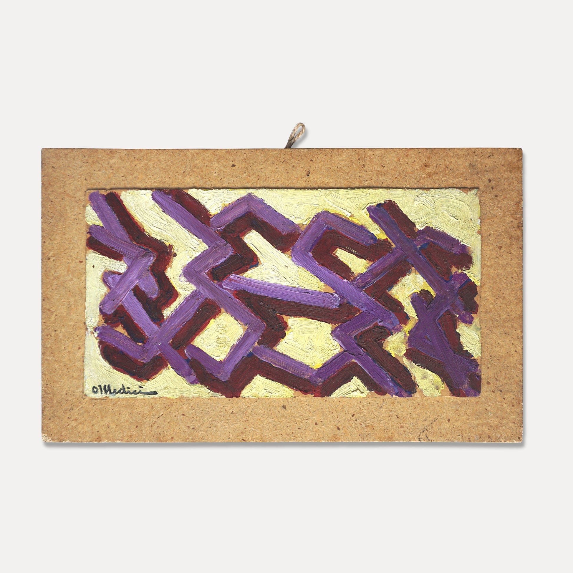An abstract oil painting on paper by Osvaldo Medici del Vascello (1902-1978), mounted on hardboard.